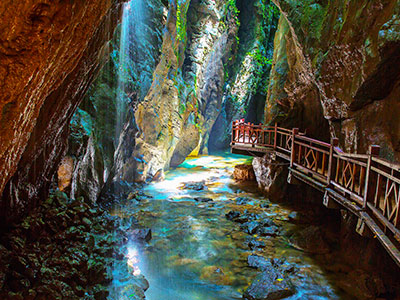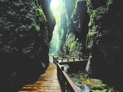 張家界朝陽地縫景區(qū)地處慈利縣朝陽境內,全長5公里,垂直深度近200米。朝陽地縫為趙家埡庫區(qū)流水經幾億年沖刷而形成的100多米深的崖縫,兩崖最窄處僅一米多寬,景色集奇、秀、險、野、幽于一體。景區(qū)內溪水清澈,空氣清新,冬暖夏涼,四季如春,是旅游觀光、避暑休閑、考察探險的好去處。